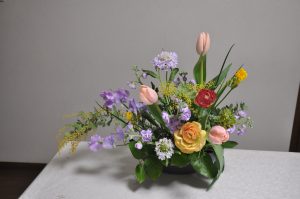 生徒さんはお花を思い思いに選び、お花を組み合わせました。