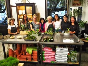そして参加者にも好きなミニ観葉を選んでいただき、箱庭的苔庭を作っていただきました。