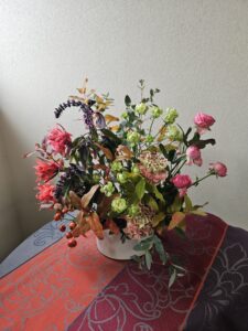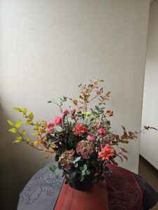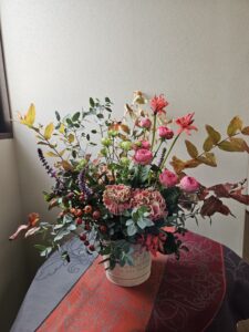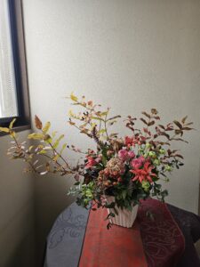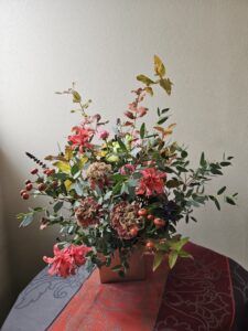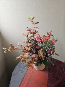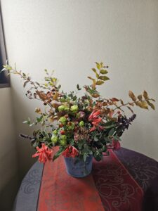 フラワーレッスンは、紅葉ヒペリカムを使って、秋の彩りを表現しました。